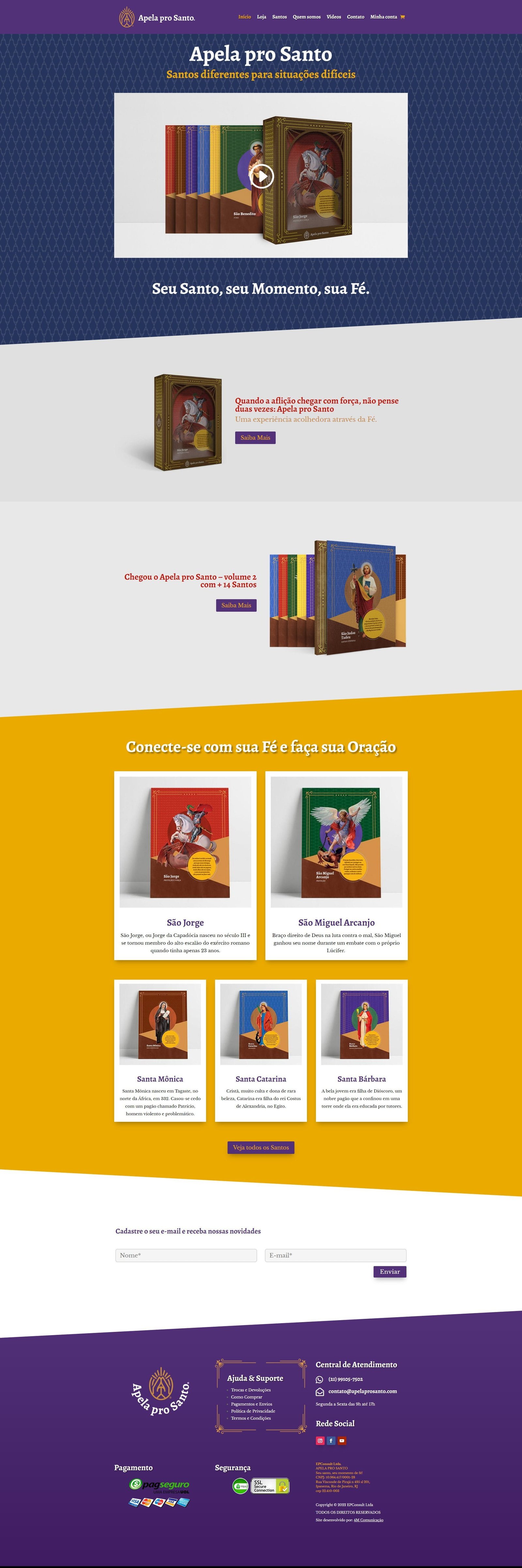 A primeira versão do site Apela pro Santo foi feita por outra empresa, mas devido a diversas configurações básicas do sistema de venda online não estarem corretamente implementadas, a equipe 4M foi contratada para refazer o site inteiramente, garantindo uma melhor usabilidade e experiência para os usuários.
