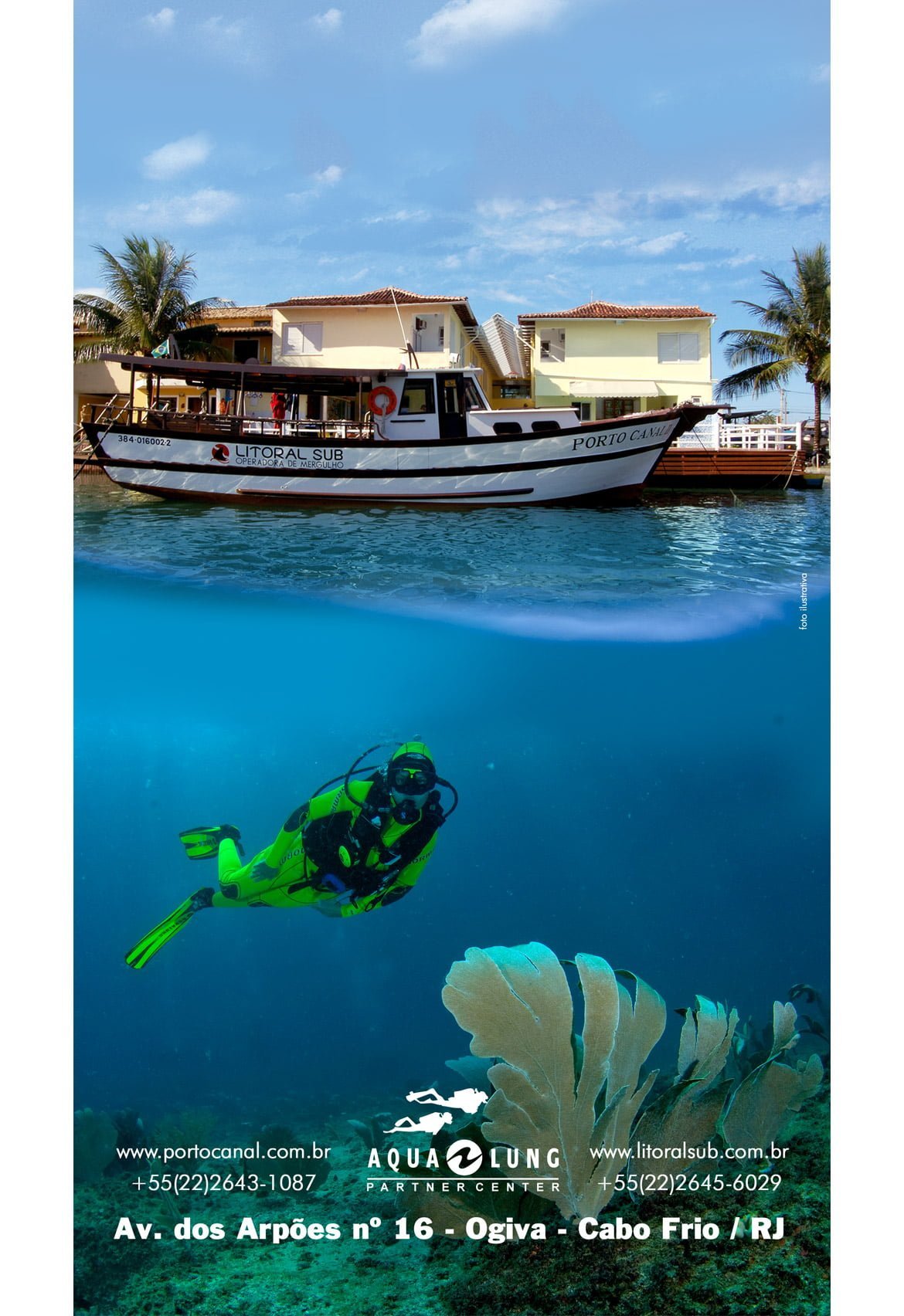 Desenvolvi a identidade visual completa para a Litoral Sub em Cabo Frio, incluindo a criação do logotipo, material gráfico e fotografia submarina.